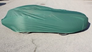 A velomobile cover made of silnylon, an extremely tear-resistant and lightweight fabric coated with silicone. The coating renders the fabric (not the seams) waterproof, additional coating of the seams is available on request (+ 10 €).